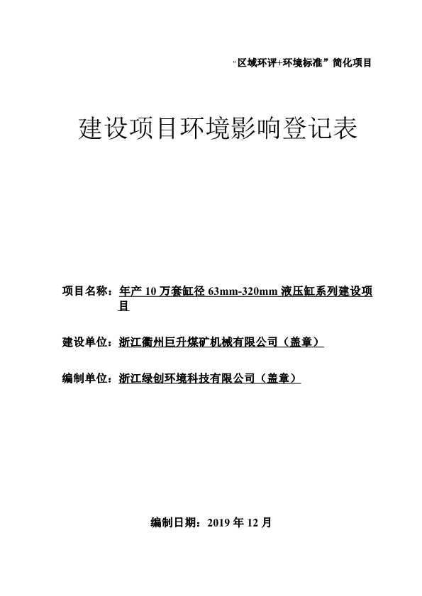 年產(chǎn)10萬(wàn)套缸徑63mm-320mm液壓缸系列建設(shè)項(xiàng)目環(huán)境影響登記表環(huán)評(píng)公示">